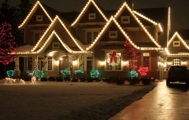 - Classic Elegance: White lights outlining your roof, windows, and walkways.