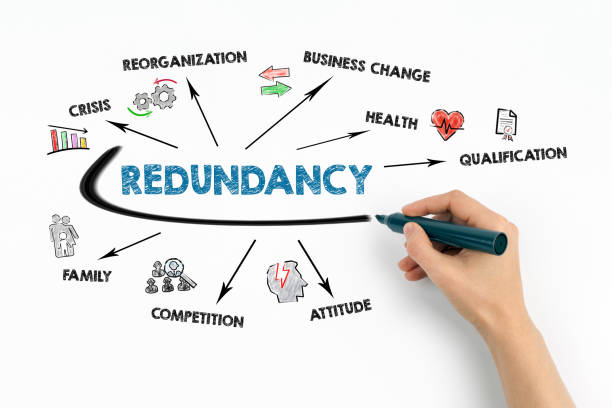 Redundancy. Crisis, Business Change, Health and Competition concept. Chart with keywords and icons on white background