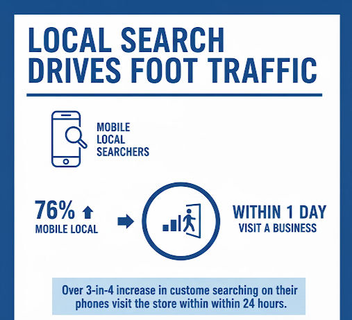 - 76% of people who search for a nearby business on mobile visit within 24 hours