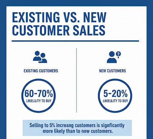 The probability of selling to an existing customer is 60–70%. Selling to a new stranger? That drops to 5-20%.