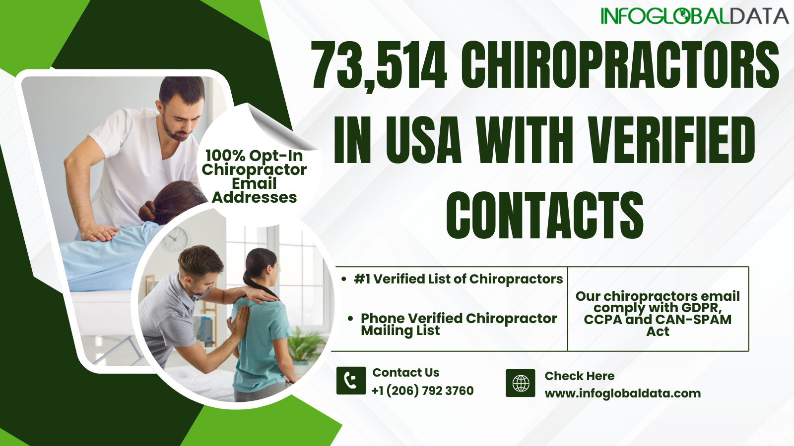 InfoGlobalData ensures that all entries in its Chiropractors Email List are permission-based, improving open rates and engagement.